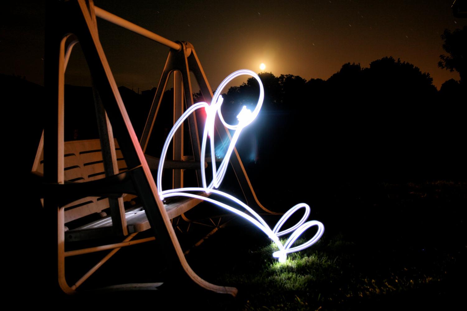 You can either run randomly through your scene, weaving an interesting trail as you go, or you can use the light to trace the outline of an object in your scene, which produces a really interesting 'neon sign' type effect.